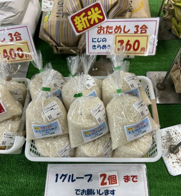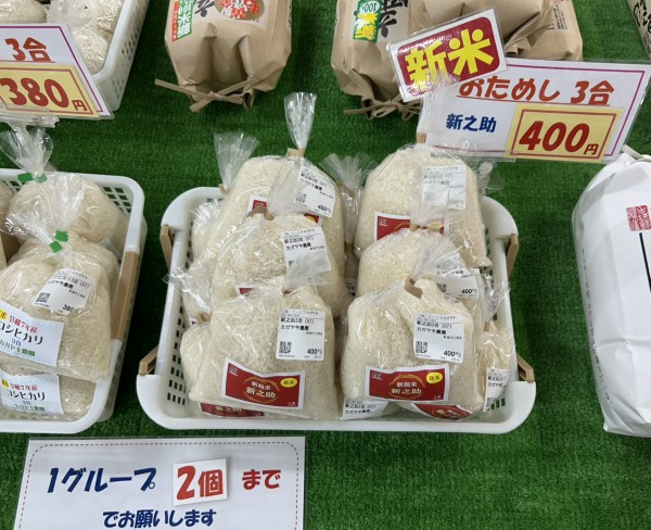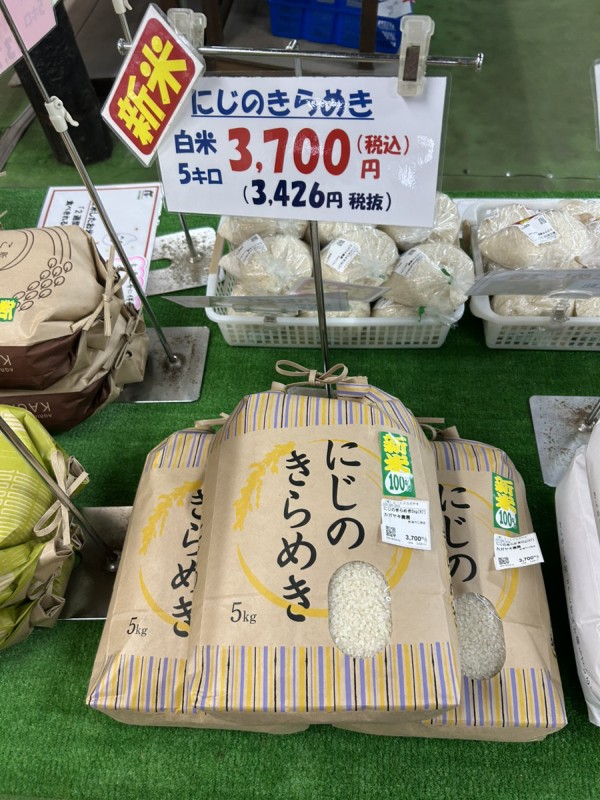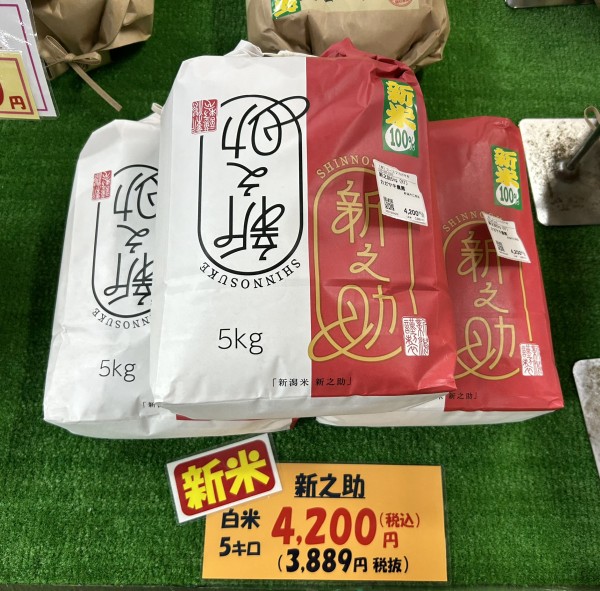 新之助、新品種のにじのきらめきの新米が出始めました。両方とも大粒で食べ応えのあるお米です。