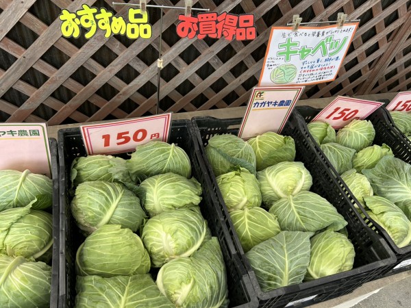 収穫が始まったばっかりのカガヤキ農園のキャベツを特価で販売しました。