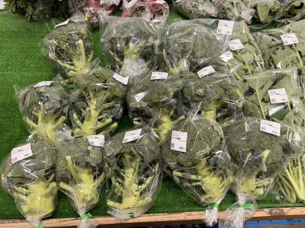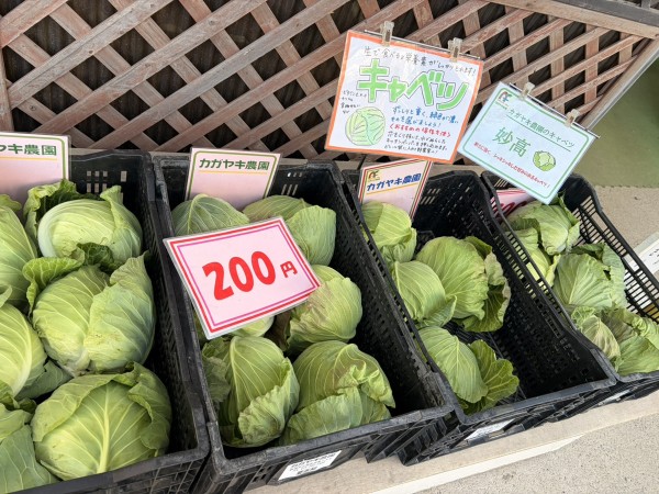 カガヤキ農園のキャベツ、妙高も出始めました。芯まで甘いキャベツです。ブロッコリーもたくさん並んでいます。