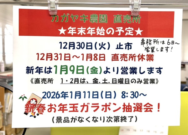 2025年も、カガヤキ農園直売所をご愛顧いただきまして、ありがとうございました。