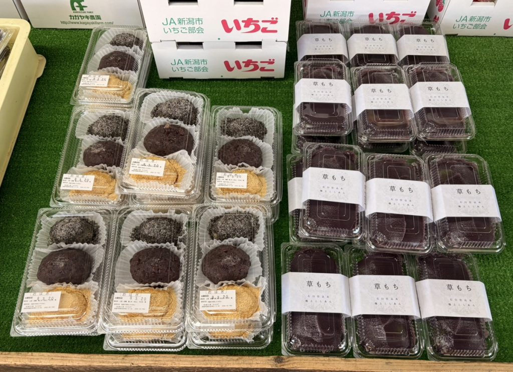 秋葉区マツサカヤさんのおはぎと草もち、羽賀さんのおはぎが出ています。