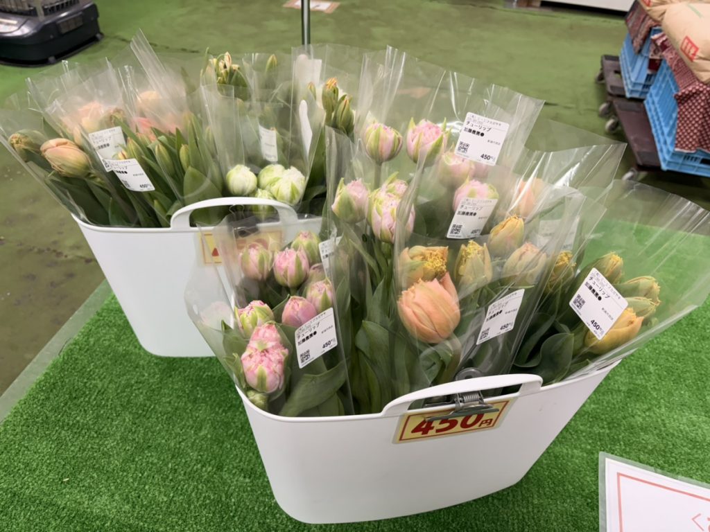 加藤農園さんのチューリップも出ています。いろいろな色があります。