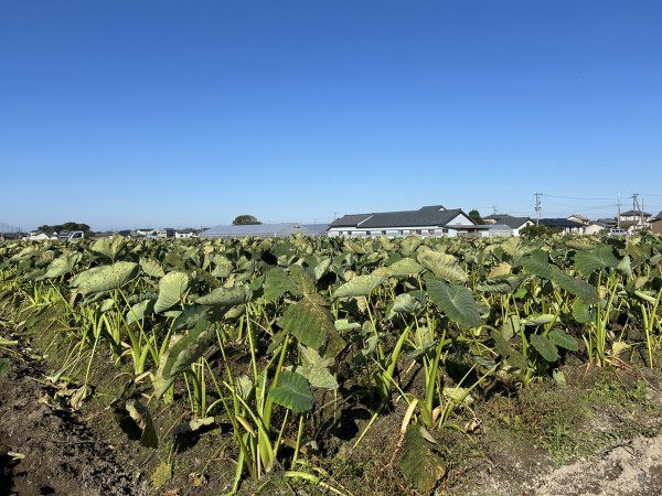 里芋をトラクターで掘り起こして、葉と茎を切り落とします。